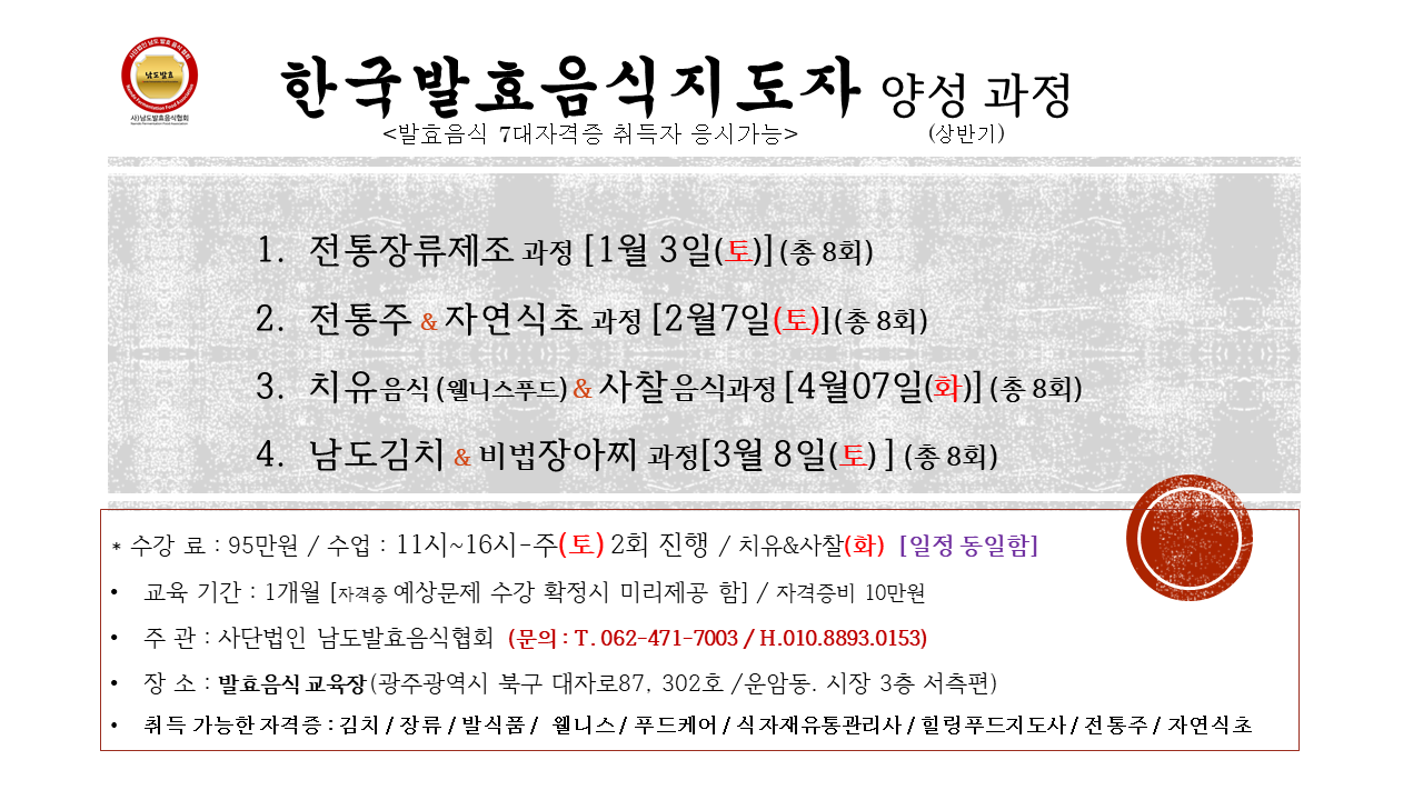 한국발효음식지도자과정 접수시작